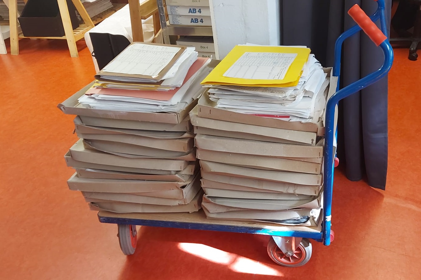 In einem ersten Schritt wurden die Zeichnungen von Verschmutzungen befreit und in archivgerechte Kisten umgelagert. Die Sortierung, Erfassung und Inventarisierung wird voraussichtlich mehrere Monate in Anspruch nehmen.